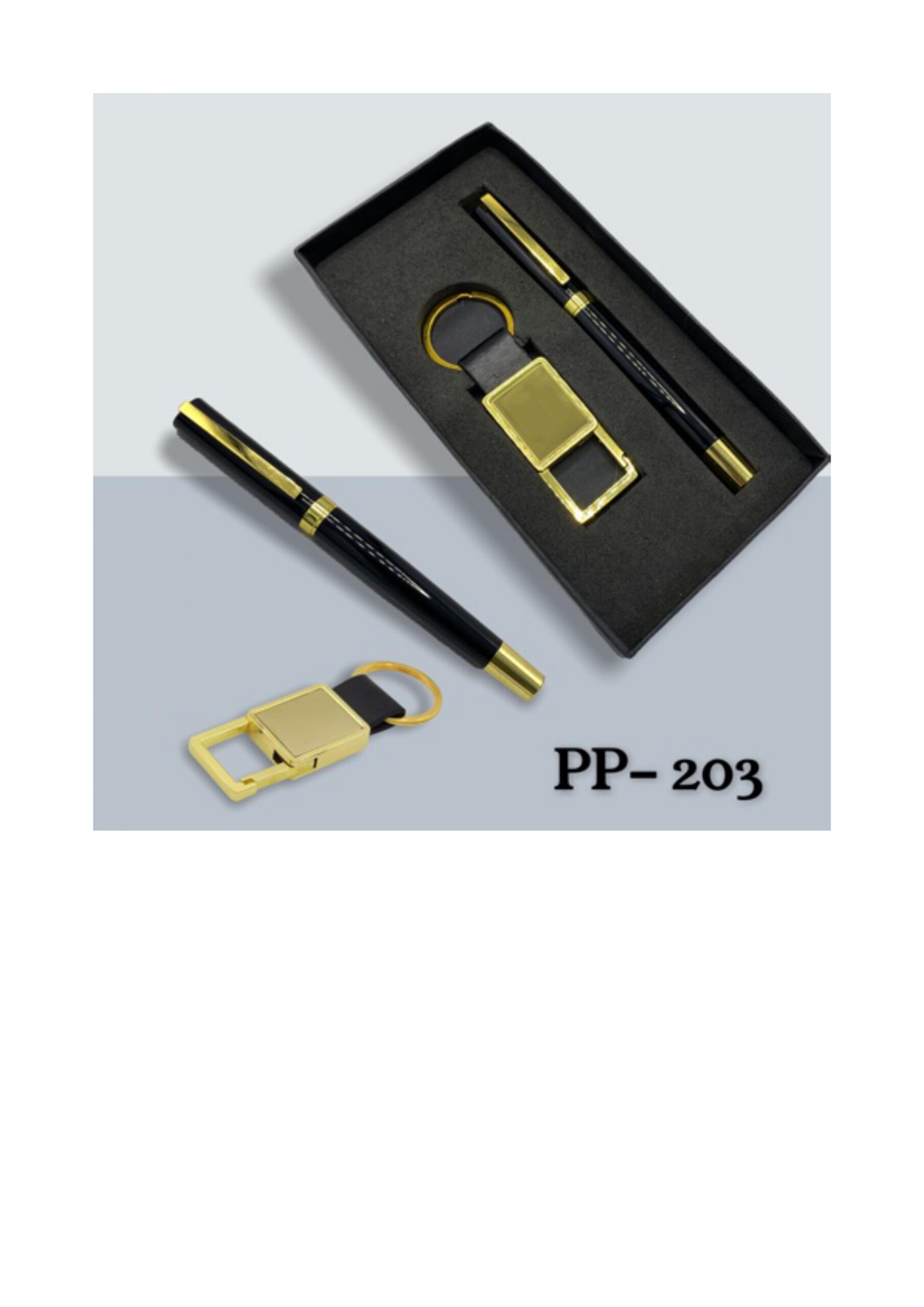 Introducing our exquisite 2-in-1 gift set, the perfect blend of style and functionality. Elevate your gifting game with a sleek ballpoint pen and a sophisticated keychain, thoughtfully curated for the discerning individual. Crafted with precision, the pen ensures smooth writing, while the keychain adds a touch of elegance to your essentials. Whether for a colleague, friend, or loved one, this set embodies versatility and class. Presented in a stylish box, it's ready to impress on any occasion. Make a lasting impression with this dual-purpose gift set – a harmonious fusion of practicality and sophistication