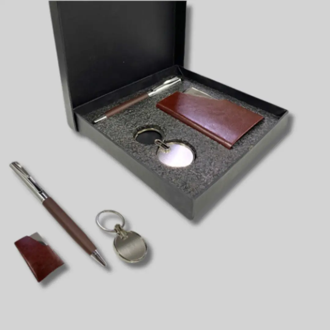 Introducing the ultimate convenience and style in the form of 3 in 1 Gift Sets. These versatile sets are designed to meet all your daily needs with elegance and functionality. Featuring a sleek keychain to keep your keys secure, a sophisticated pen for jotting down notes, a practical key holder for organization, a chic card case for easy access to your essentials, and a sleek wallet to keep your cash and cards organized. Whether for yourself or as a thoughtful gift, these sets offer unparalleled convenience and sophistication, ensuring you’re always prepared in style wherever you go.