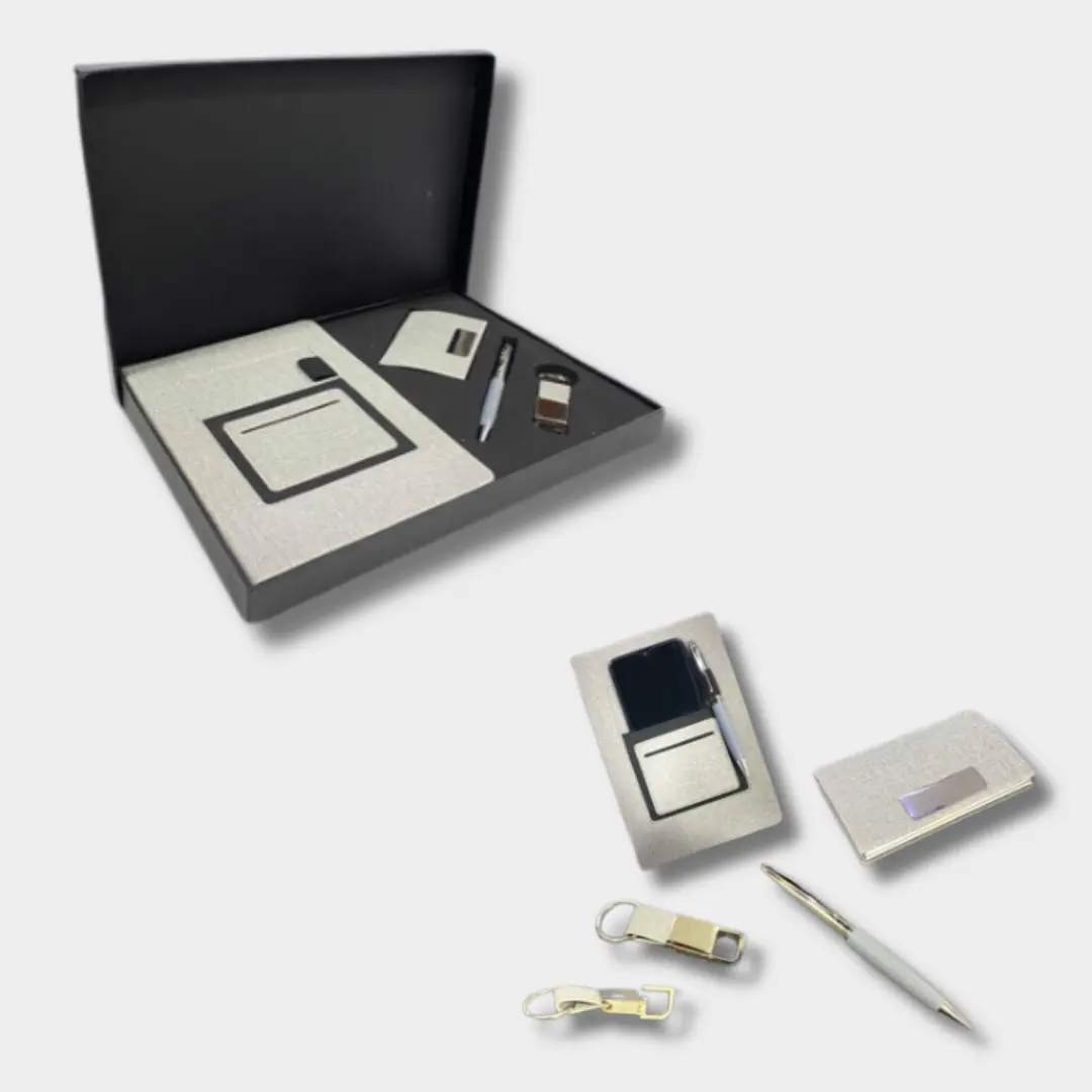 The allure of 4-in-1 gift sets lies in their versatility and thoughtfulness. Combining essential items like a diary, pen, keychain, and wallet, these sets offer practicality with a touch of elegance. A diary, perfect for jotting down thoughts and plans, pairs seamlessly with a quality pen, ensuring every word is penned with precision. The keychain adds a personal touch, keeping keys organized while reflecting one’s style. Meanwhile, the wallet provides functionality and sophistication, housing essentials with ease. Together, these items form a cohesive ensemble, ideal for gifting on various occasions, from birthdays to corporate events, resonating with both utility and charm.